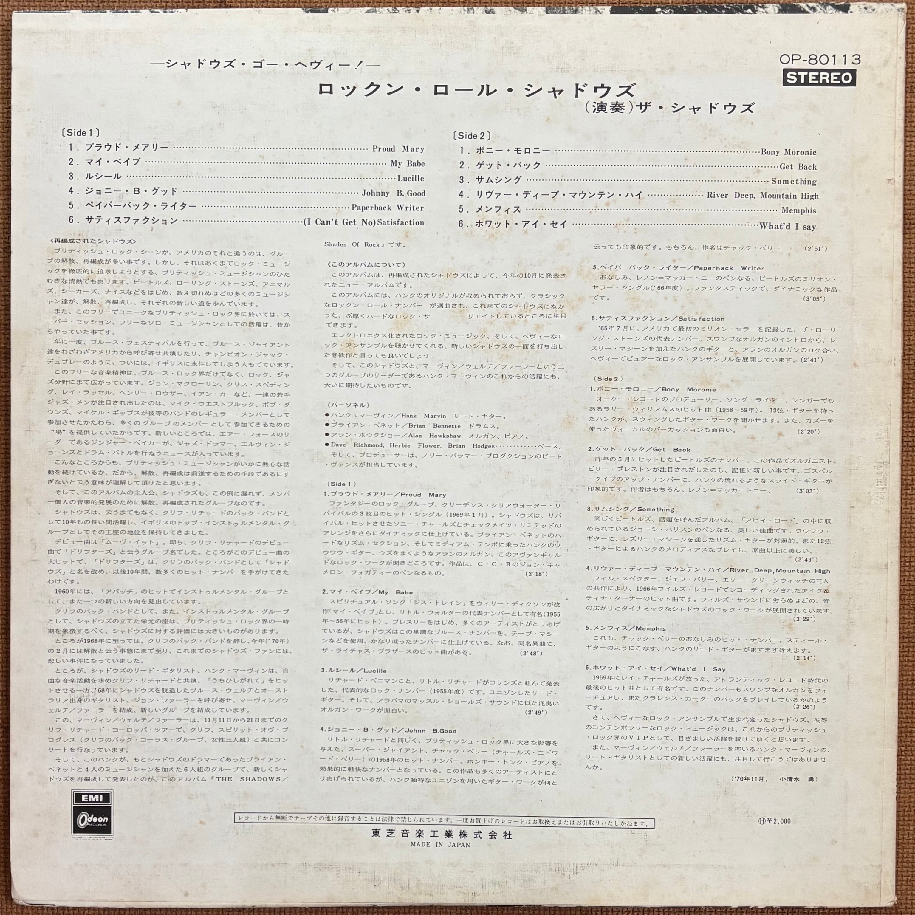 そのシャドウズのリード・ギタリスト、ハンク・マーヴィンによって再編され70年にリリースされた作品。