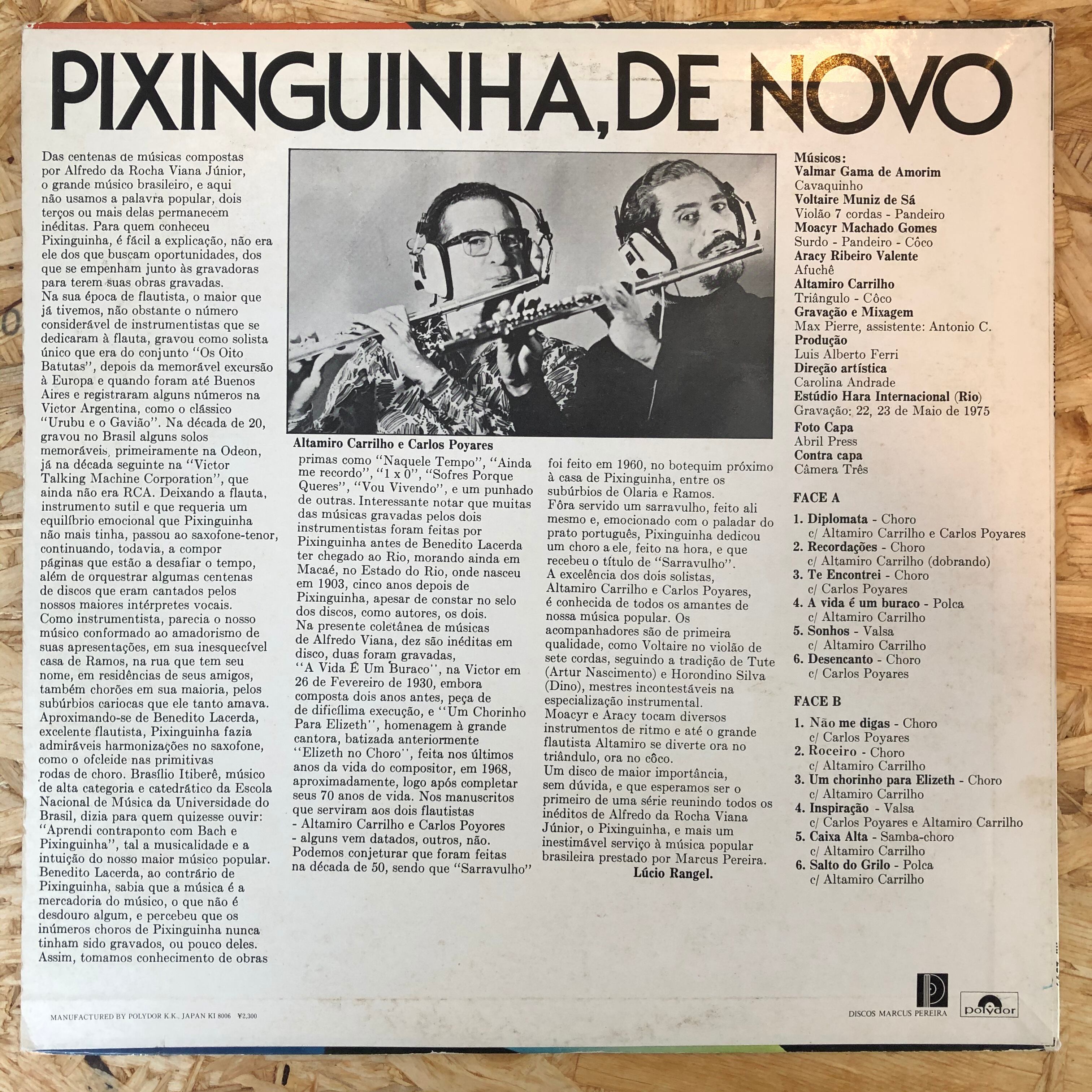 ブラジルを代表するフルート奏者アルタミラ・カリロとカルロス・ポヤーリスによるピシャンギーニャ作品のコンパイル集!ショーロの美しさに心奪われます!軽快なタッチの「Desencanto」や「Um chorinho para Elizeth」最高!!