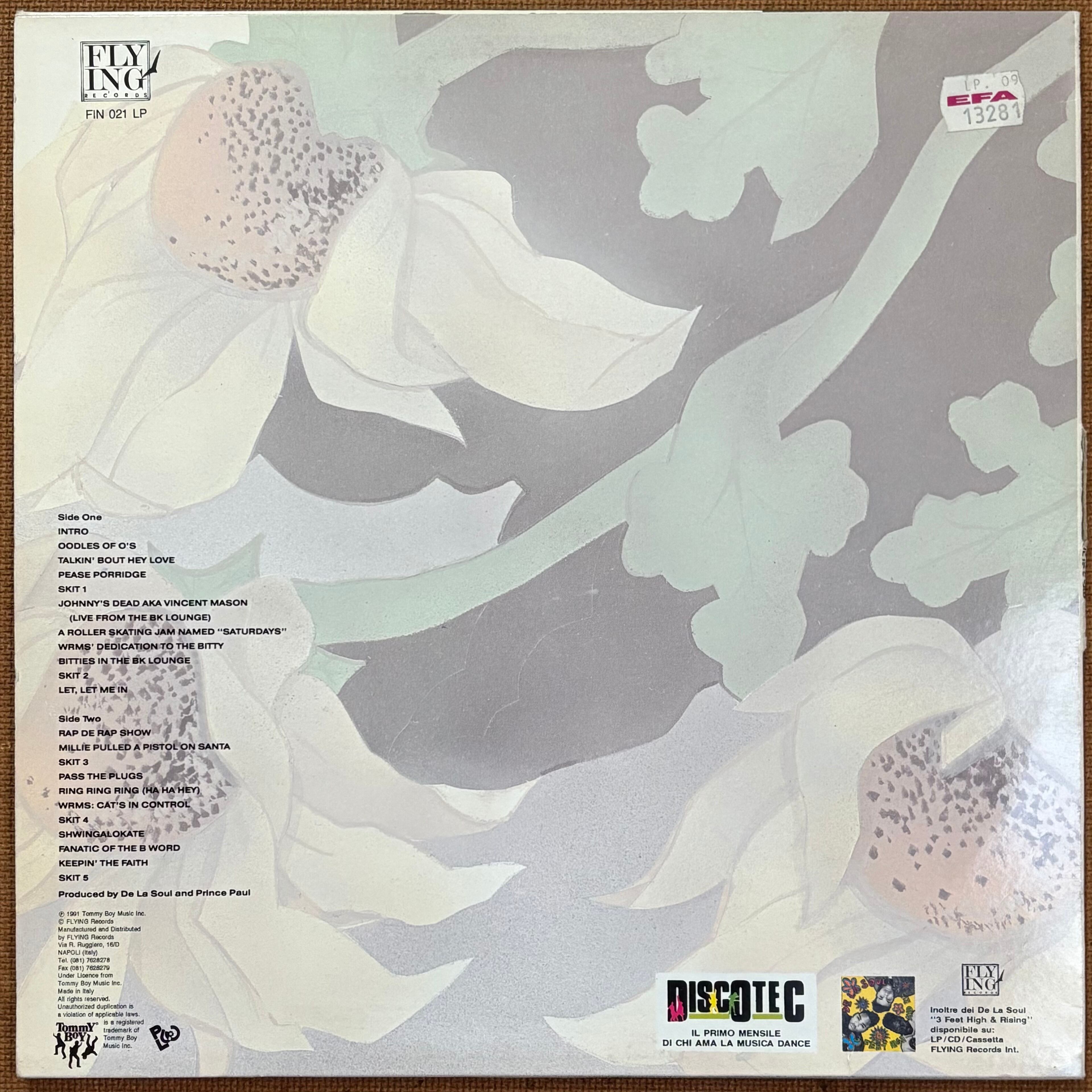 全てがクラシックだが、名曲中の名曲「A Roller Skating Jam Named Saturday」、「Ring Ring Ring"」ほか、まさにデ・ラ・ソウルらしいStevie Wonder「Hey Love」ネタな「Talkin' Bout Hey Love」などなどセンス溢れるニュースクール傑作!!